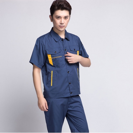 苏州鹰诺服装:深兰色短袖工作服AD04-2