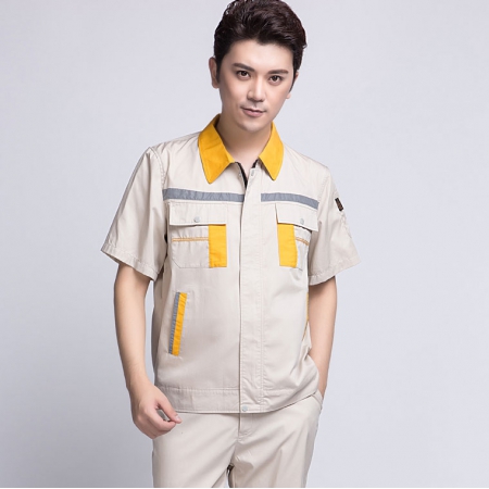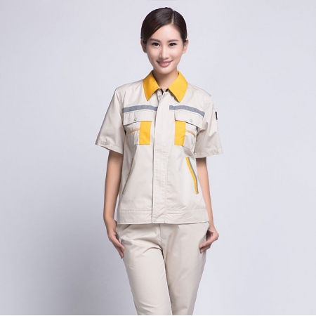 苏州鹰诺服装:米色拼黄色秋季工作服AC09-1