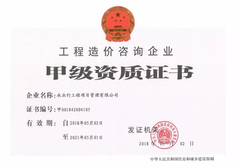近日,永业行取得工程造价咨询资质