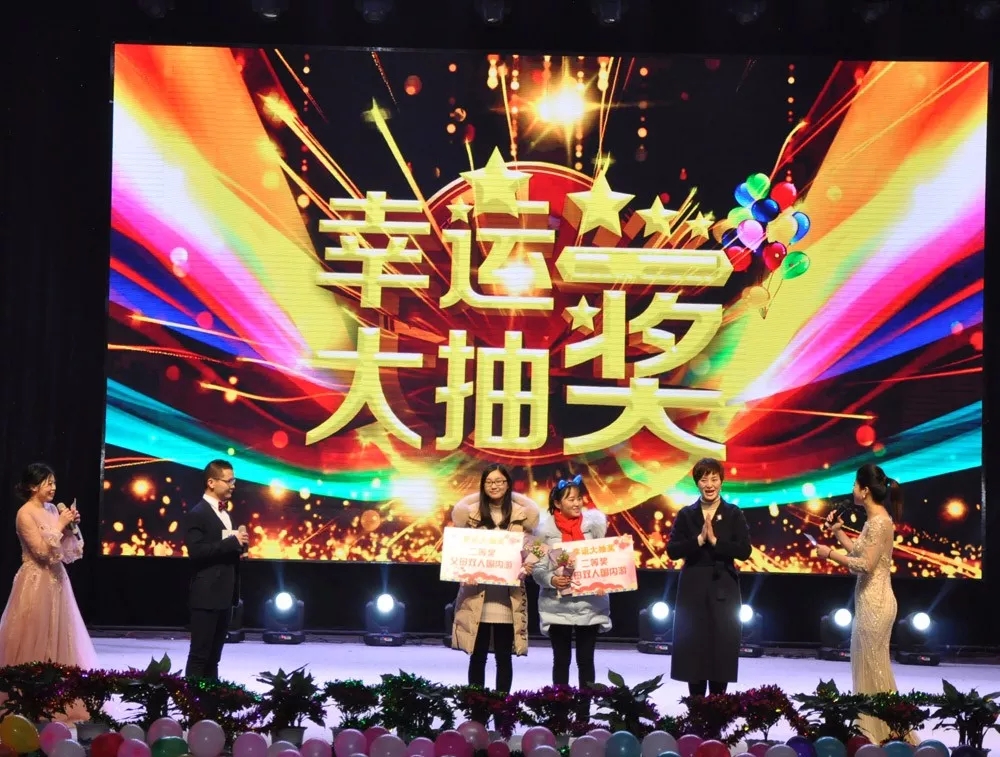 年会里除了精彩纷呈的节目,当然更少不了幸运大抽奖和微信抢红包!便携台灯、按摩仪、年货大礼包、微波炉、感恩父母旅游大奖接连诞生,欢呼声连连。