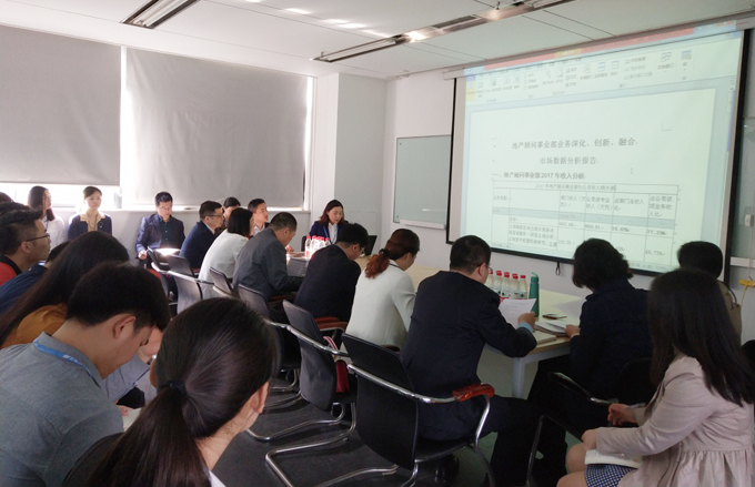 2018年3月28日上午,由永业行总裁潘世炳带队,副总裁雷小军、运营副总监兼业务中心负责人肖莉、综合品牌部总经理杨雪莲及各服务部门负责人组成的工作组,赴地产顾问事业部开展了主题为“深化、创新、融合发展”的调研工作。