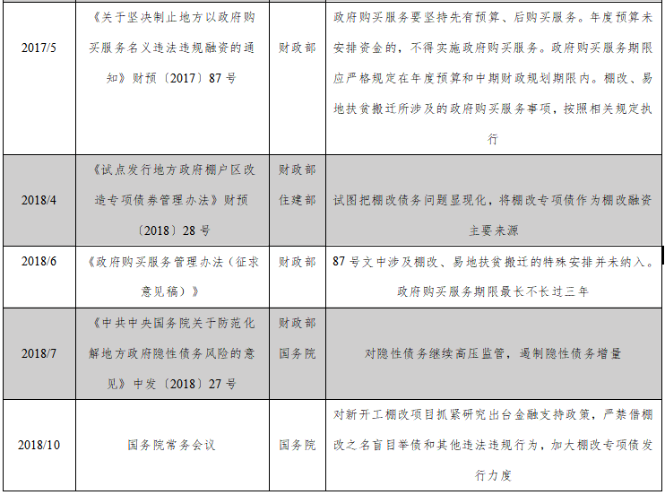 表1:政府购买棚改服务政策一览