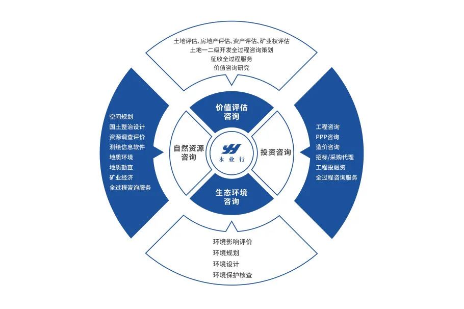 这里有价值评估咨询、自然资源咨询、投资咨询、生态环境咨询等四大业务板块;