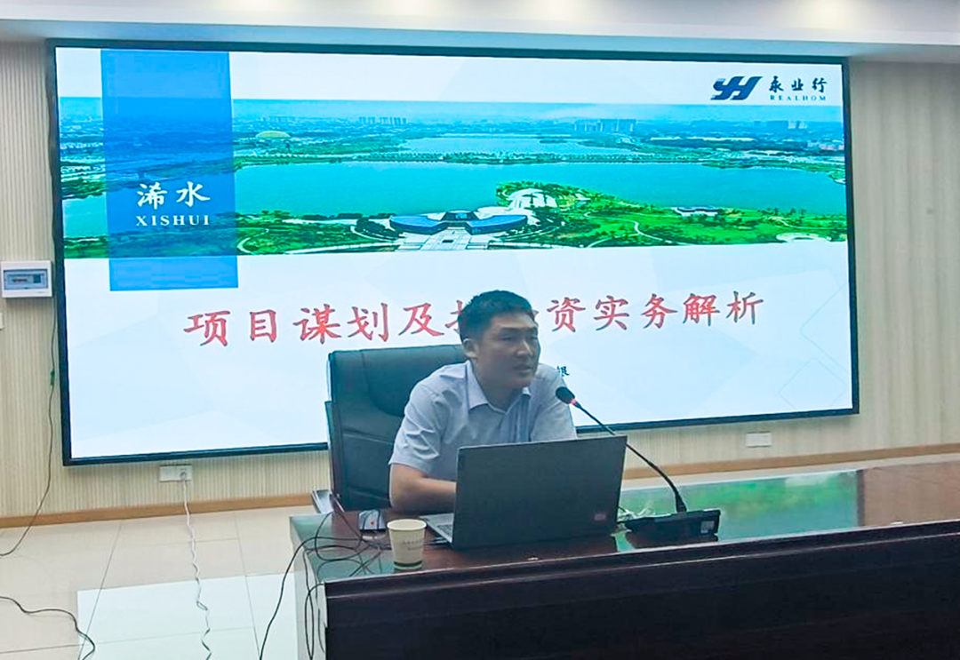 2022年8月8日,受浠水县人民政府邀请,永业行投资咨询事业群工程咨询事业部副总经理乐成银在浠水县“全县项目谋划培训会”上,就项目谋划及投融资实务解析作专题交流培训。浠水县副县级领导杨长荣主持会议。