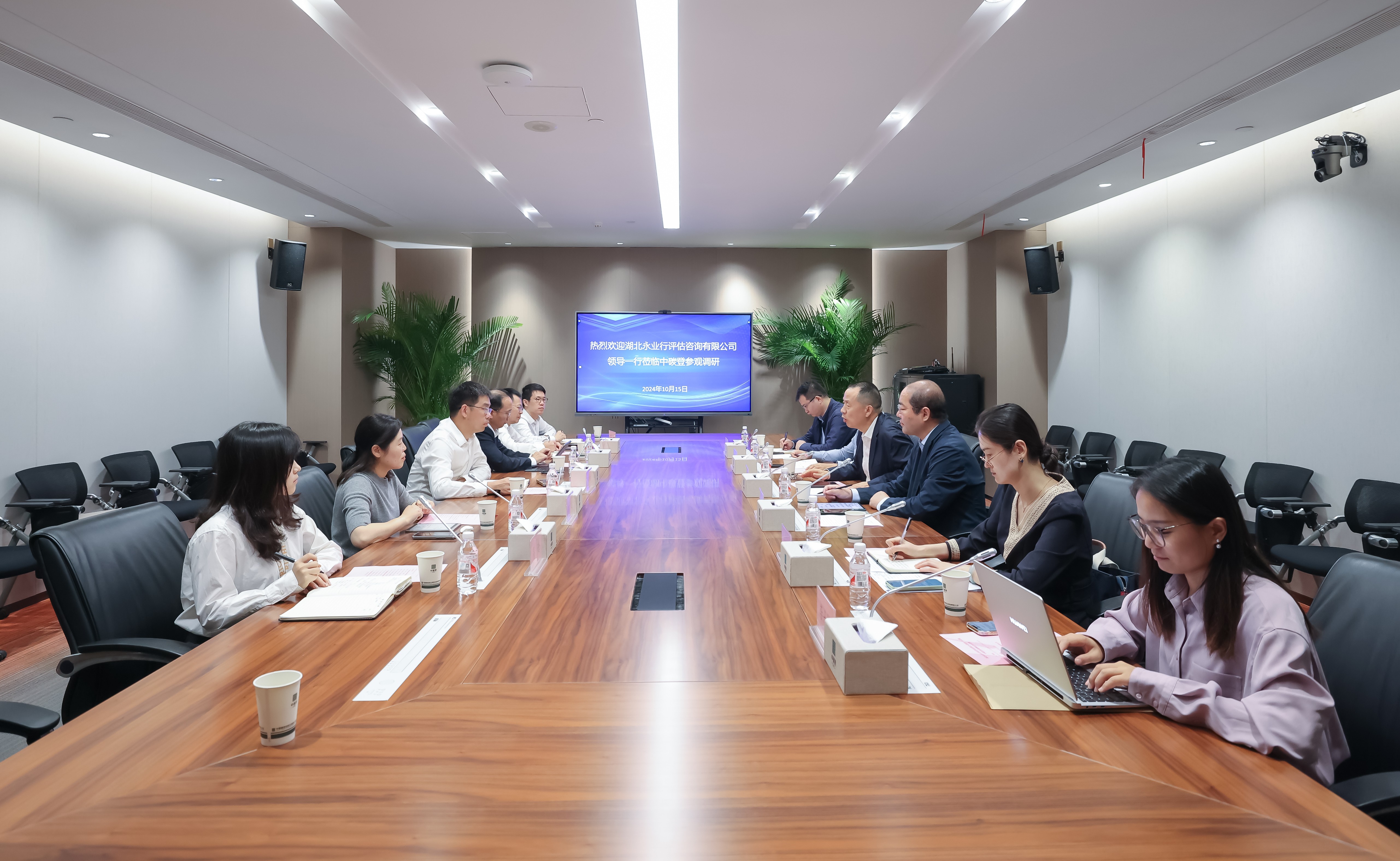 中碳登研究院部门负责人龚波,研究发展部部门负责人吴迪,气候投融资促进工作专班易晗,湖北中碳资产管理有限公司副总经理方文;永业行技术中心总经理李冀云,投资金融产业链研发中心副总经理曲双双,投资金融产业链投融资(双碳)业务总监倪政,碳中和研究中心助理总经理李士娜参加座谈交流。