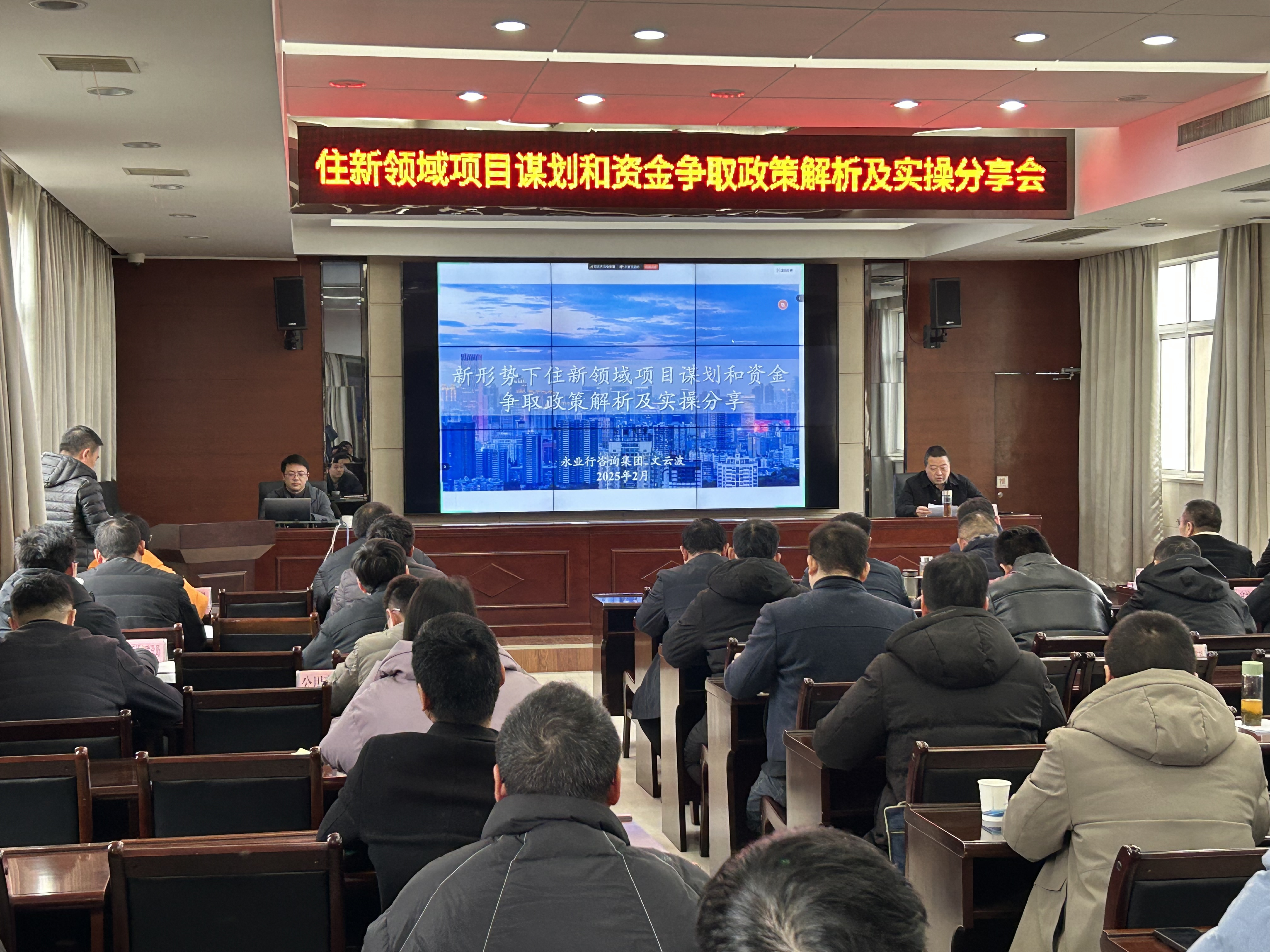 2025年2月11日,襄阳市住房和城市更新局关于住新领域项目谋划和资金争取政策解析及实操培训会在襄阳召开,襄阳市住房和城市更新局党组成员、副局长张德平主持会议。永业行高级副总裁文云波受邀作“住新领域项目谋划和资金争取政策解析及实操分享”的培训。