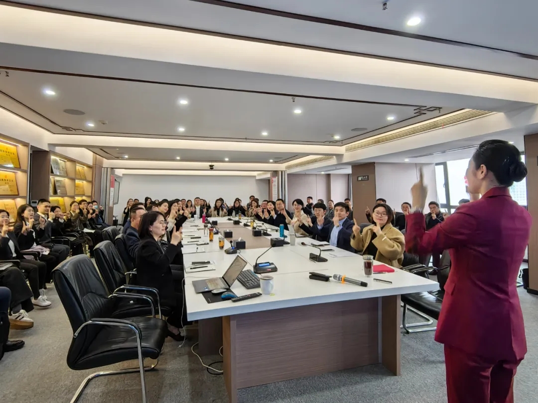 培训伊始,骆佩老师通过"微笑操"迅速破冰,结合面部表情管理与肢体语言训练,生动诠释了微笑在商务场景中的关键作用。在理论授课环节,骆佩老师结合永业行实际,聚焦商务交流、商务会谈、商务用餐等高频场景,通过典型案例剖析与标准化动作示范,深入讲解现代商务礼仪规范。